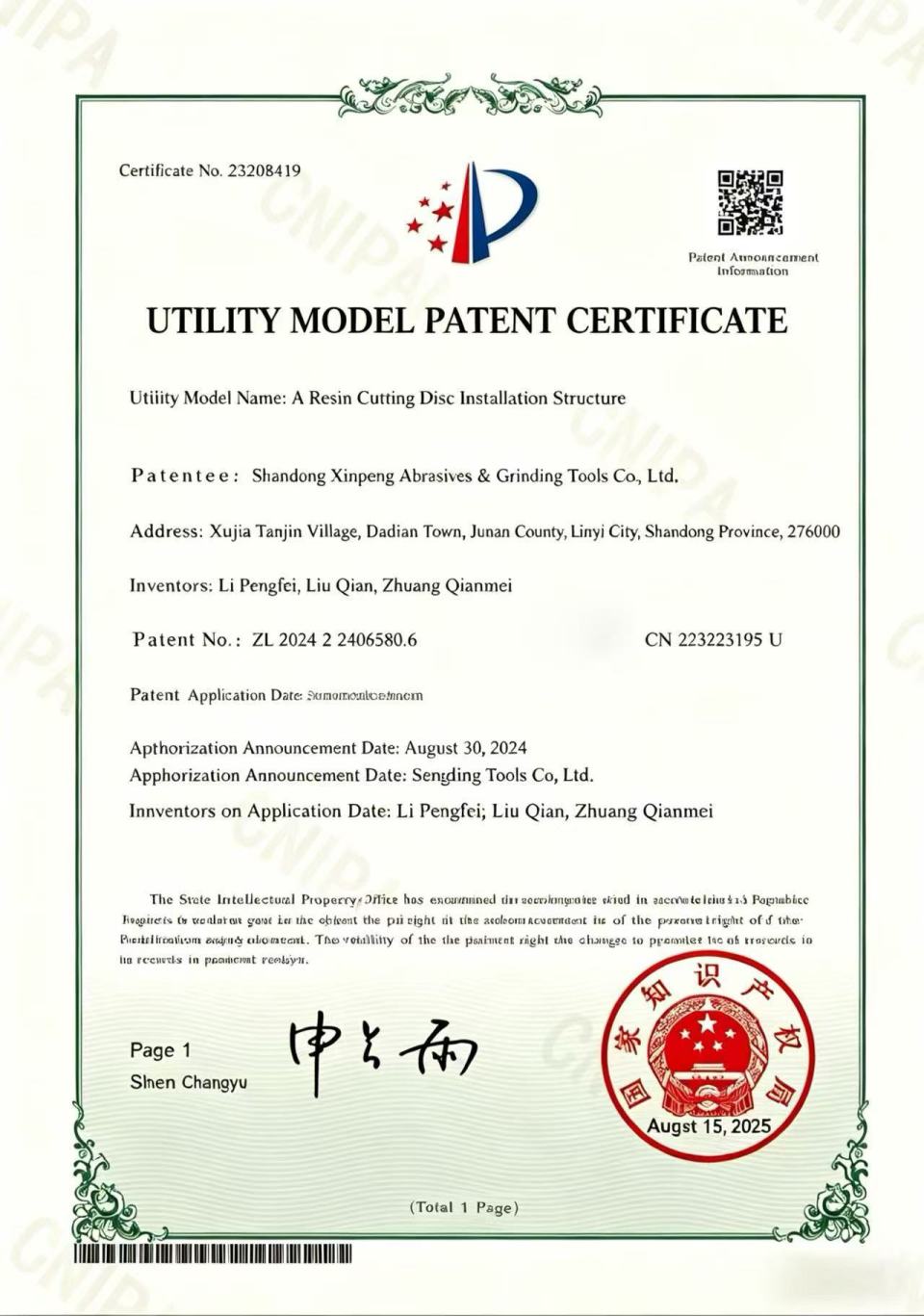 QUALIFICATION CERTIFICATE